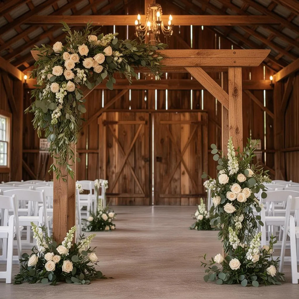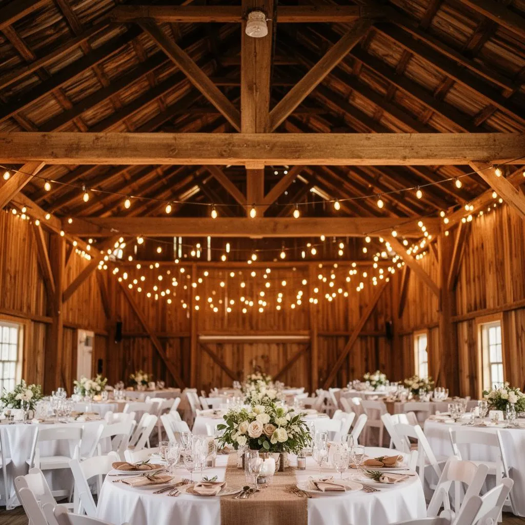 Atmosphärische Scheune mit freiliegenden Holzbalken.